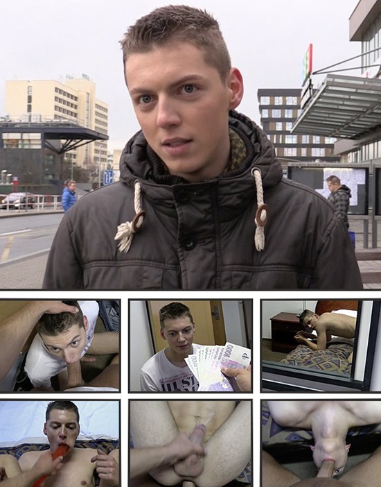 In this czech hunter scene we have this gorgeous blonde guy willing to do just about anything for some extra cash. Come see how we picked this guy on the streets and we invited him to a hotel room to show him something he hasn’t seen before. Watch this straight guy getting his ass hole ripped by a large throbbing cock. Come watch this guy getting paid for his services and smiling when he sees the sum we offered him. Check him out as he is up and ready to swallow a big cock without hesitating one minute. Then watch him sucking on a huge plastic dildo in front of the camera.